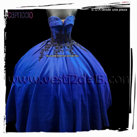 Descripción: vestido para quinceañera color azul rey con encajes bordados directo a la tela