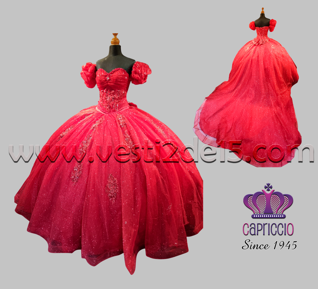 Descripción: Vestido Rojo vivo para las quinceañeras que les gusta lo mas vistoso y lucidor esta este lindo diseño en tul y encaje con corte de princesa
